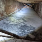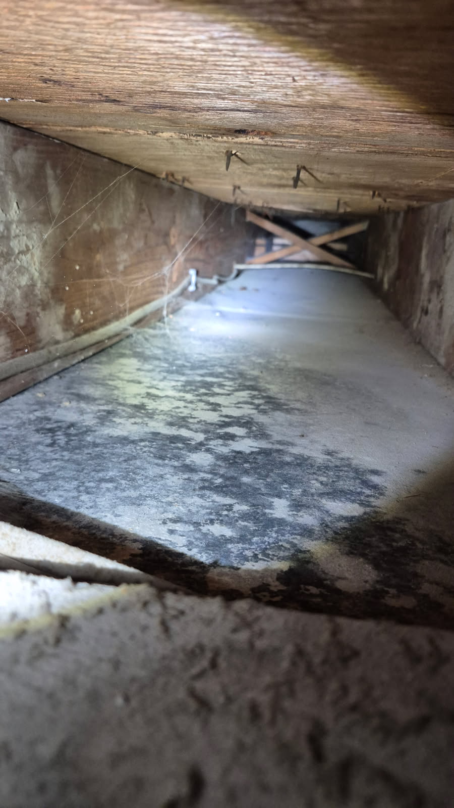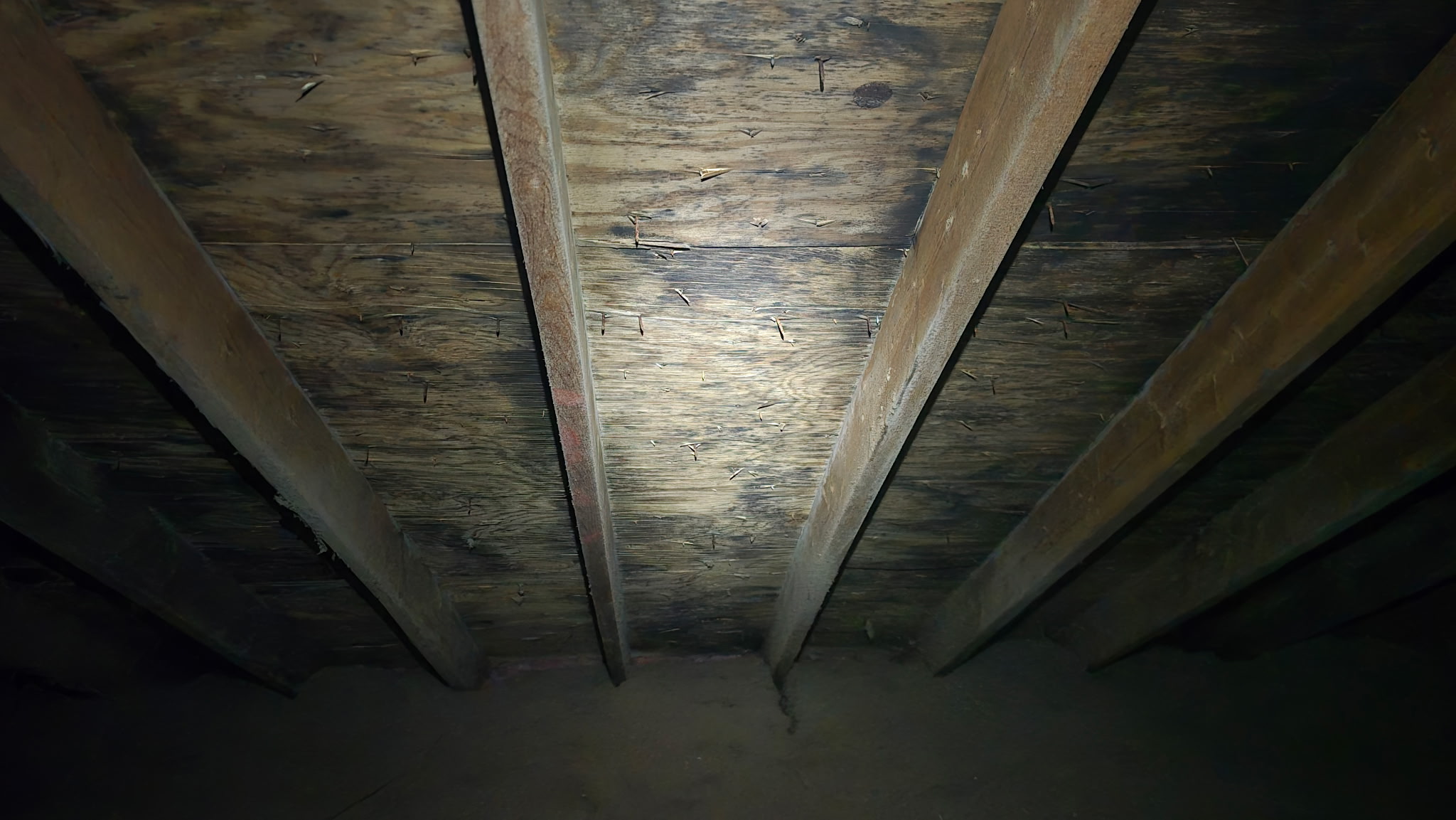 Check for standing water, basement flooding, plumbing issues, sewer backups, roof leaks, or inadequate attic ventilation — all common causes of mold development.